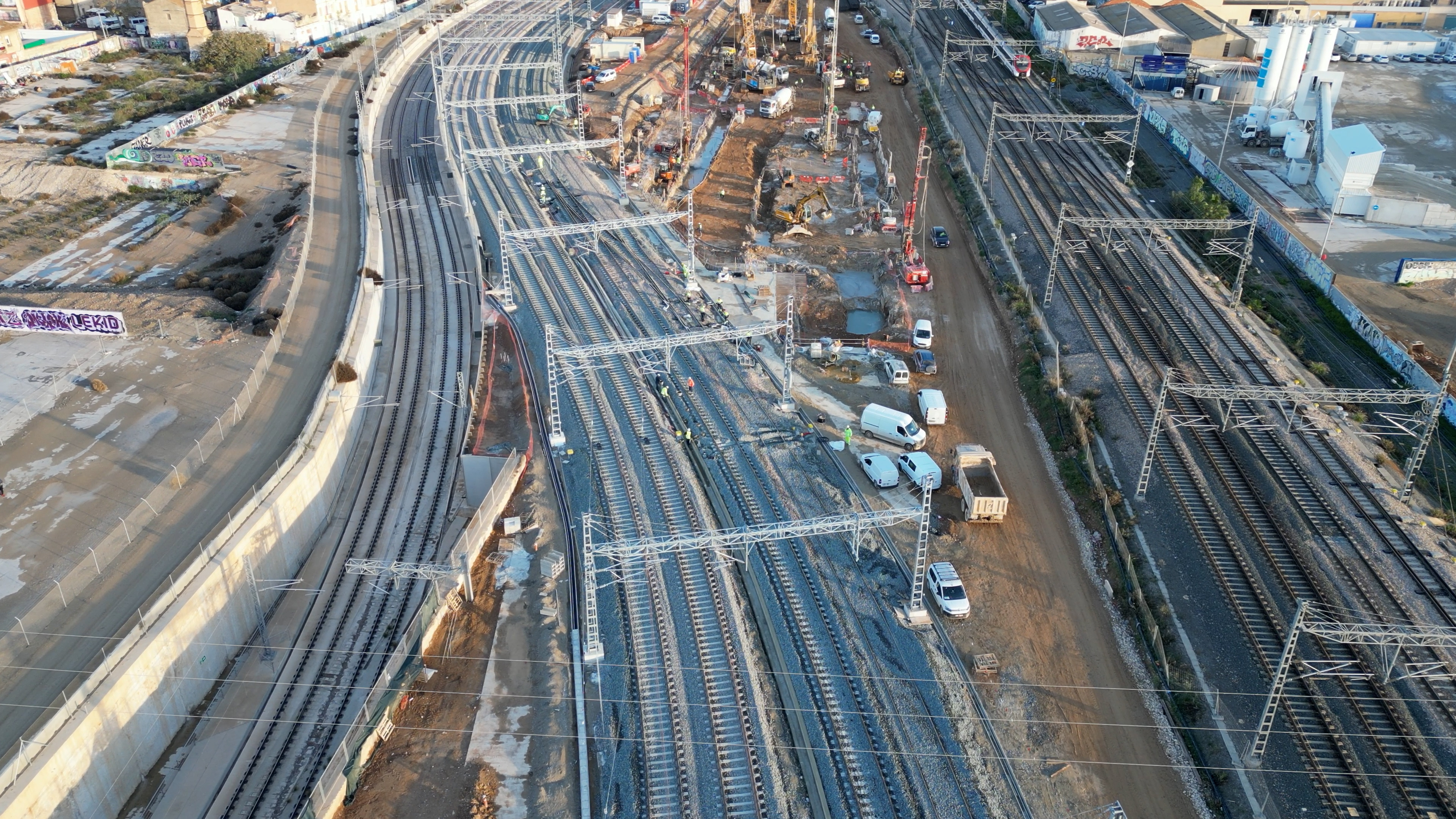 Avances continuos mientras se mantiene el servicio ferroviario Desde el inicio de las obras, en febrero de 2023, el objetivo ha sido desviar todos los tráficos ferroviarios que acceden a la ciudad de València, en el tramo comprendido entre la avenida de Fernando Abril Martorell y el edificio Iturbi. Todo el tráfico circulará por este desvío provisional y permitirá acometer de forma continua la ejecución del túnel.